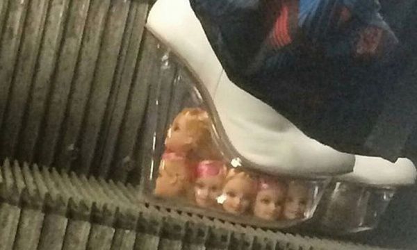 Поднимаясь по эскалатору из метро, окружающие обращали внимание на туфли девушки. Обувка была довольно странная. Внутри прозрачной платформы болтаются оторванные головы кукол. Необычная московская мода… Очень интересно, что это символизирует?