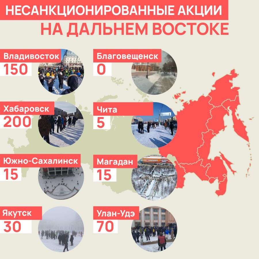 Сегодня, 31 января, на Дальнем Востоке и Сибири прошли несогласованные с местными властями, а потому незаконные, массовые мероприятия. Впрочем, говорить о большой массовости не приходится: в ряде городов митинговать вышли единицы человек.
