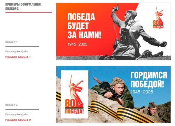 Лого состоит из графического изображения памятника, георгиевской ленты, цифры «80» и слова «Победа!». Брендбук подготовили для оформления рекламной и сувенирной продукции, уличных конструкций и мероприятий празднования.
