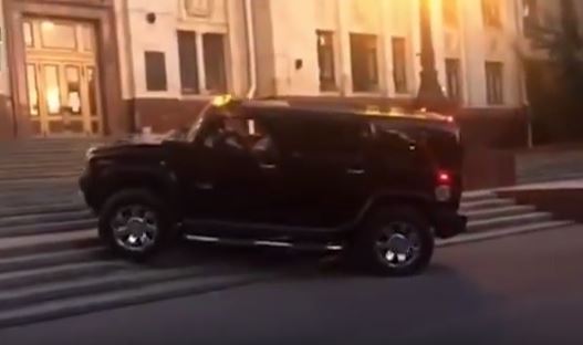 В сети YOUTUBE появился видео ролик, на котором дорогущий «Хаммер» (Hummer) не спеша поднимается по лестнице самого престижного классического университета России – МГУ имени М.В. Ломоносова (Москва).