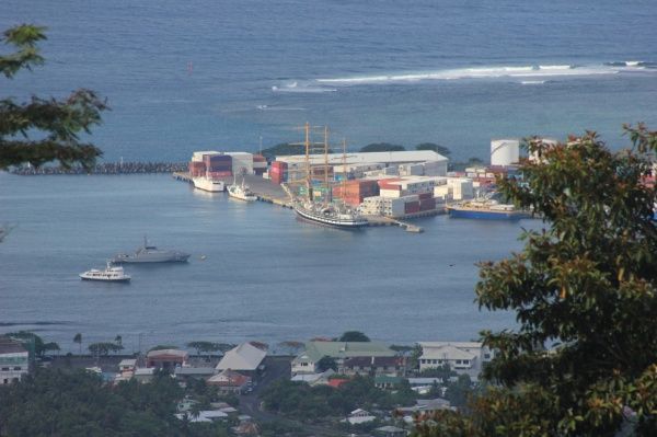 Всё для большинства было ново — иностранный катер-буксир, лоцман-самоанец, представители портовых властей, местный причал, иностранные суда в порту. Палладовцы рассматривали с борта судна город. На первый взгляд он небольшой, но красивый. Сразу привлекла внимание католическая церковь, расположенная в самом центре города и цветущие деревья вдоль берега.