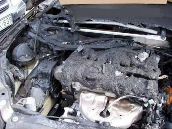 Этот автомобиль взяла напрокат американка в Будапеште. Проехала на нем около 220 километров, все время на первой передаче, думая, что коробка передач - автомат. Это фото мотора, сделанное страховым агентом.