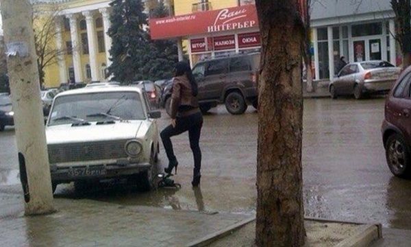Красивая дама, выйдя из салона «шикарного» автомобиля «копейки» в Воронеже, направилась к багажнику, достала насос и решительно принялась накачивать переднее колесо. Непросто, наверное, стоя на высоких каблуках в луже управляться с работать с насосом. Мужики проходили мимо и восхищались: «Какая молодец! Все бы девушки вот так». Прекрасная независимая женщина!