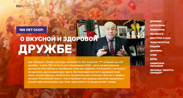 В канун Нового года и 30 декабря - дня 100-летия со дня образования СССР - «Российская газета» запустила специальный проект «Кухни народов СССР».