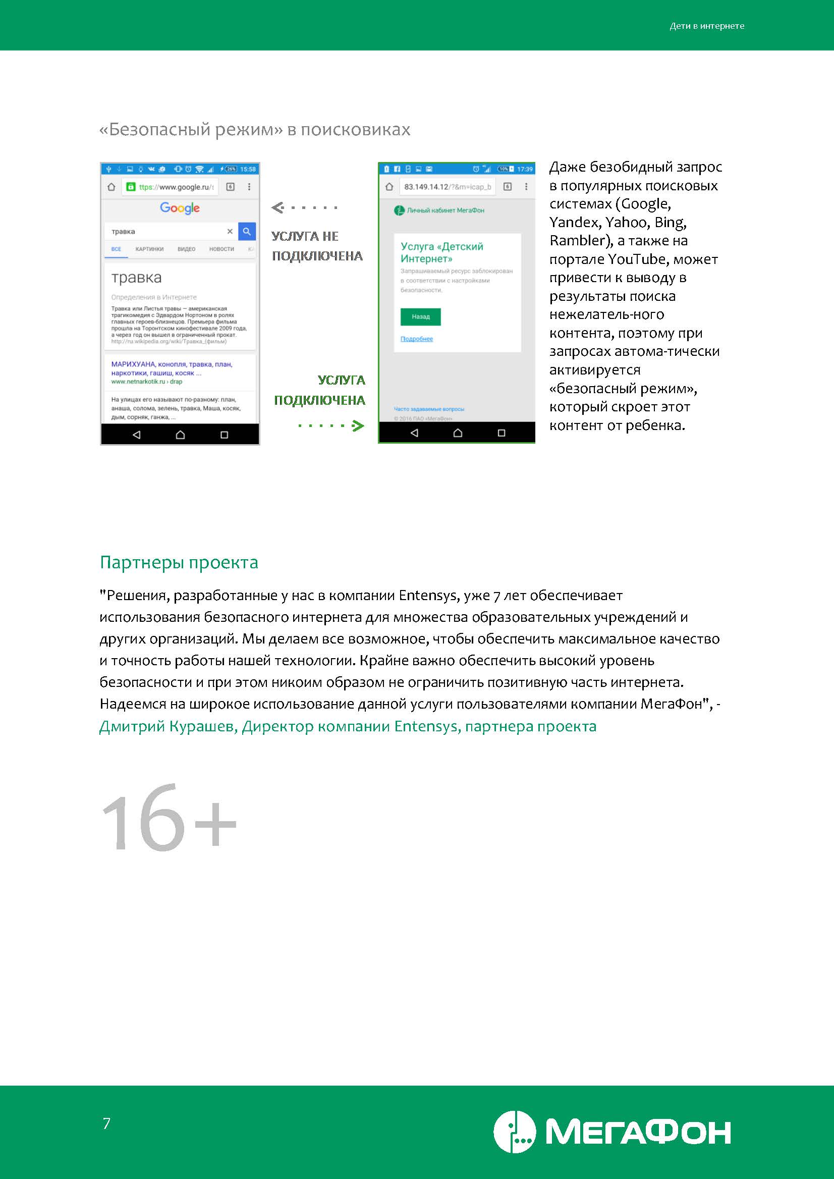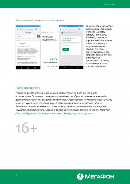 "Решения, разработанные у нас в компании Entensys, уже 7 лет обеспечивает использования безопасного интернета для множества образовательных учреждений и других организаций. Мы делаем все возможное, чтобы обеспечить максимальное качество и точность работы нашей технологии. Крайне важно обеспечить высокий уровень безопасности и при этом никоим образом не ограничить позитивную часть интернета. Надеемся на широкое использование данной услуги пользователями компании МегаФон", - Дмитрий Курашев, Директор компании Entensys, партнера проекта