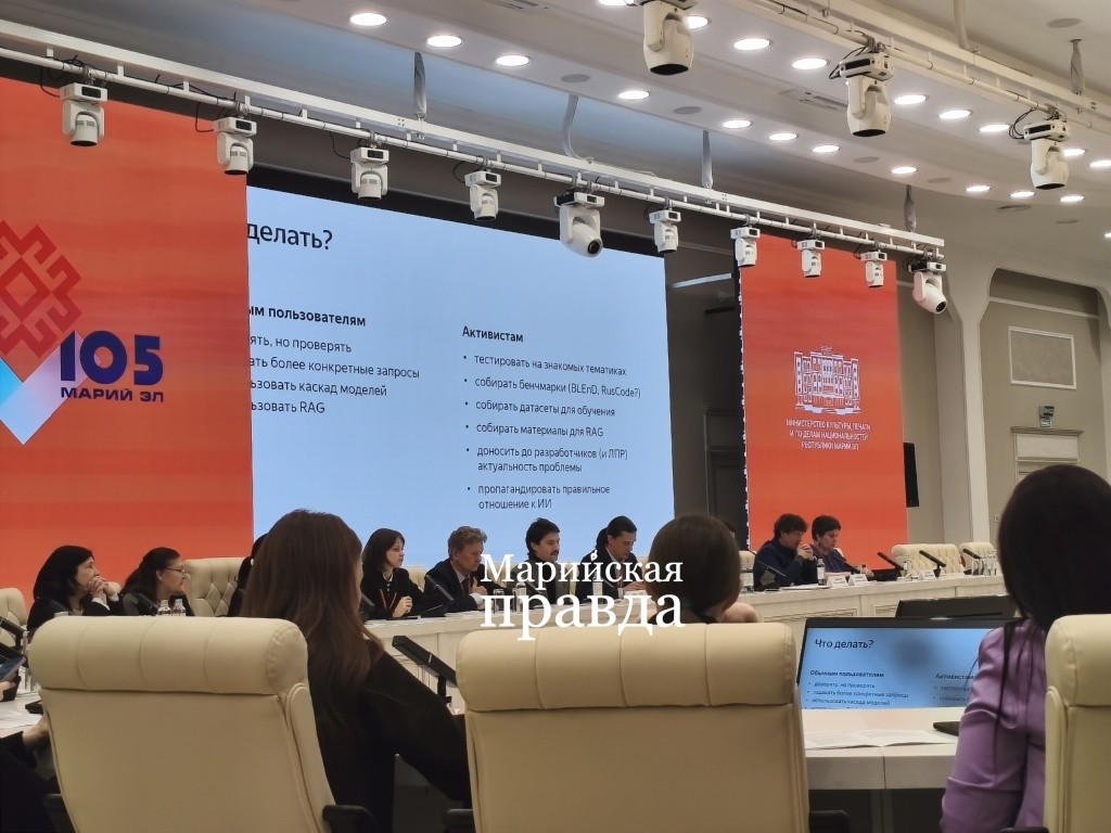 Михеев провел эксперимент, попросив ИИ назвать популярные марийские сказки. Вышло, надо признать, сомнительно. Спикер отметил, что сейчас, когда ученые республики вовсю трудятся на онлайн-ниве, обучить нейросети становится проще – есть база для начинаний. Он напомнил, что недавно ИИ научился распознавать марийский язык и переводить с него (или на него) другие языки народов России. Пополняется статьями о национальной культуре и политике новая российская интернет-энциклопедия РУВИКИ.
