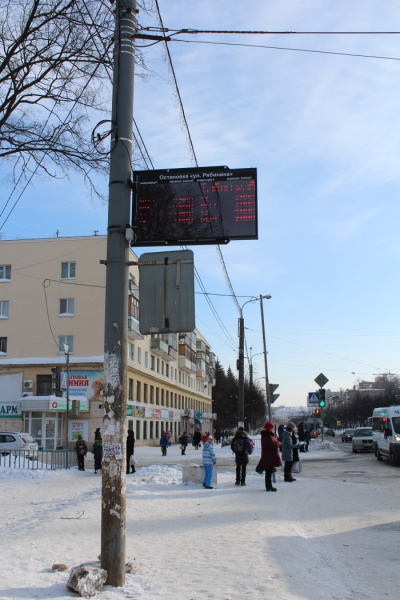 Табло связаны с системой мониторинга общественного транспорта на базе ГЛОНАСС/GPS, поэтому информация о прибытии общественного транспорта отображается в режиме реального времени.