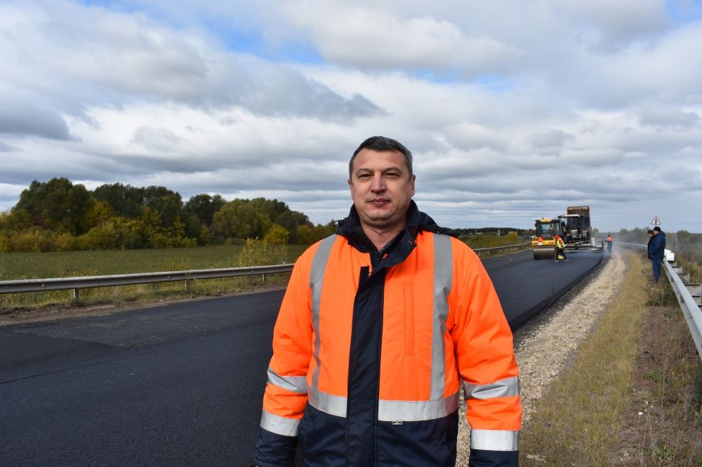 − Укладку асфальтов типа SP называют еще методом объемного проектирования. Они испытываются совсем иначе, чем другие и делают дорогу более долговечной и качественной. На этом участке идет укладка SP-19, где цифра 19 − это размер самого крупного заполнителя в миллиметрах.