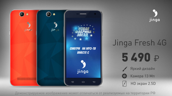 Розничная цена Jinga Fresh 4G – 5 490 рублей. Смартфоны Jinga можно приобрести в рассрочку. Jinga Fresh 4G оснащены пятидюймовым IPS-экраном c разрешением 1280x720 точек, четырёхъядерным процессором MTK 6735P. Смартфон работает на операционной системе Android 6.0, имеет 1 Гб оперативной памяти и 8 Гб — физической, с возможностью расширения до 64 Гб. Также в аппаратах имеются два слота для SIM-карт и отдельный – под SD-карту. Разрешение основной камеры составляет 13 Мп, фронтальной камеры – 5 Мп. Емкость батареи – 2 200 мАч. В салонах «Ростелекома» смартфон доступен в двух цветах корпуса – оранжевом и синем.