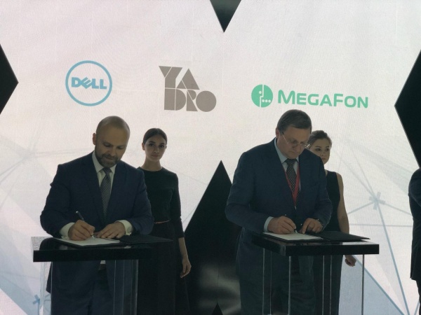 Меморандум о намерениях, закрепляющий договоренности между партнерами, 6 июня на Петербургском международном экономическом форуме подписали генеральный директор ПАО «МегаФон» Геворк Вермишян, вице-президент и генеральный директор Dell EMC (входит в группу компаний Dell Technologies) в России, Казахстане и Центральной Азии Борис Щербаков и глава «ИКС Холдинга», председатель Совета директоров YADRO Антон Черепенников.