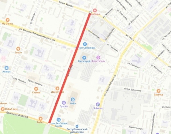 Улица Кирова будет перекрыта на участке от Ленинского проспекта до пересечения с улицей Мира на период с 6 утра 9 июля до 6 утра 12 июля.