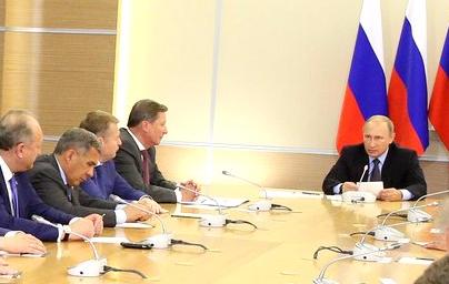 Победившие на региональных выборах 13 сентября 2015 года губернаторы 22 субъектов Российской Федерации встретились сегодня с главой государства Владимиром Путиным в его резиденции в Сочи. Избранный глава Марий Эл Леонид Маркелов сидел на встрече вторым справа от президента, между главой администрации Сергеем Ивановым и президентом Татарстана Рустамом Миннихановым.