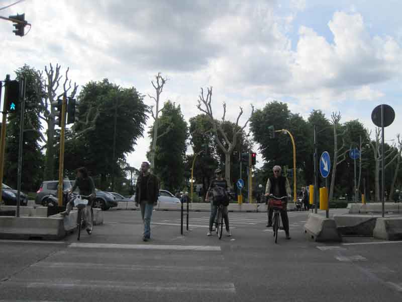 Вообще, велосипед - одно из популярнейших транспортных средств. Много на улицах мотоциклов и мопедов. Водители осторожны и культурны. Несколько раз, задержавшись на переходе, чтобы убедиться, что водитель пропускает тебя, приходилось видеть приветливый жест и улыбку остановившегося автомобилиста: "Prego!" ("Пожалуйста!")