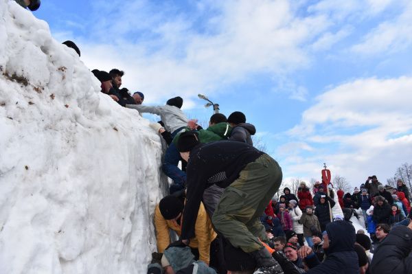 В Йошкар-Оле на Масленицу дети и взрослые, не стесняясь, штурмовали снежную крепость