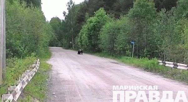 Медведь вышел на дорогу посмотреть, кто там приехал и можно ли это есть?