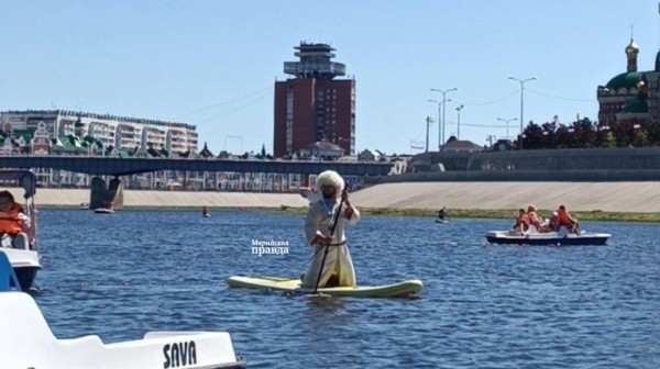Вот, например, йошкаролинец Муса Моллачиев участвовал в заплыве в своей любимой черкеске и папахе. Когда он отплывал, признался, что плавать толком не умеет, только по-собачьи, но такую активность пропустить не мог. Примерно час Муса пробыл в путешествии на воде. Вернулся на берег довольный, но с мокрыми ногами.