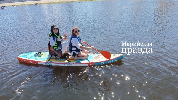 На специальные доски для заплыва по Кокшаге в этот раз встали более 20 участников. Кто-то катался один, кто-то – с ребенком. Одни плыли стоя на сапе, другие- на коленях или сидя.Многие из них были в оригинальных костюмах. Почему бы не добавить изюминки и не блистать на воде в ярком наряде? И, возможно, получить за это приз и красивый контент для своих соцсетей.