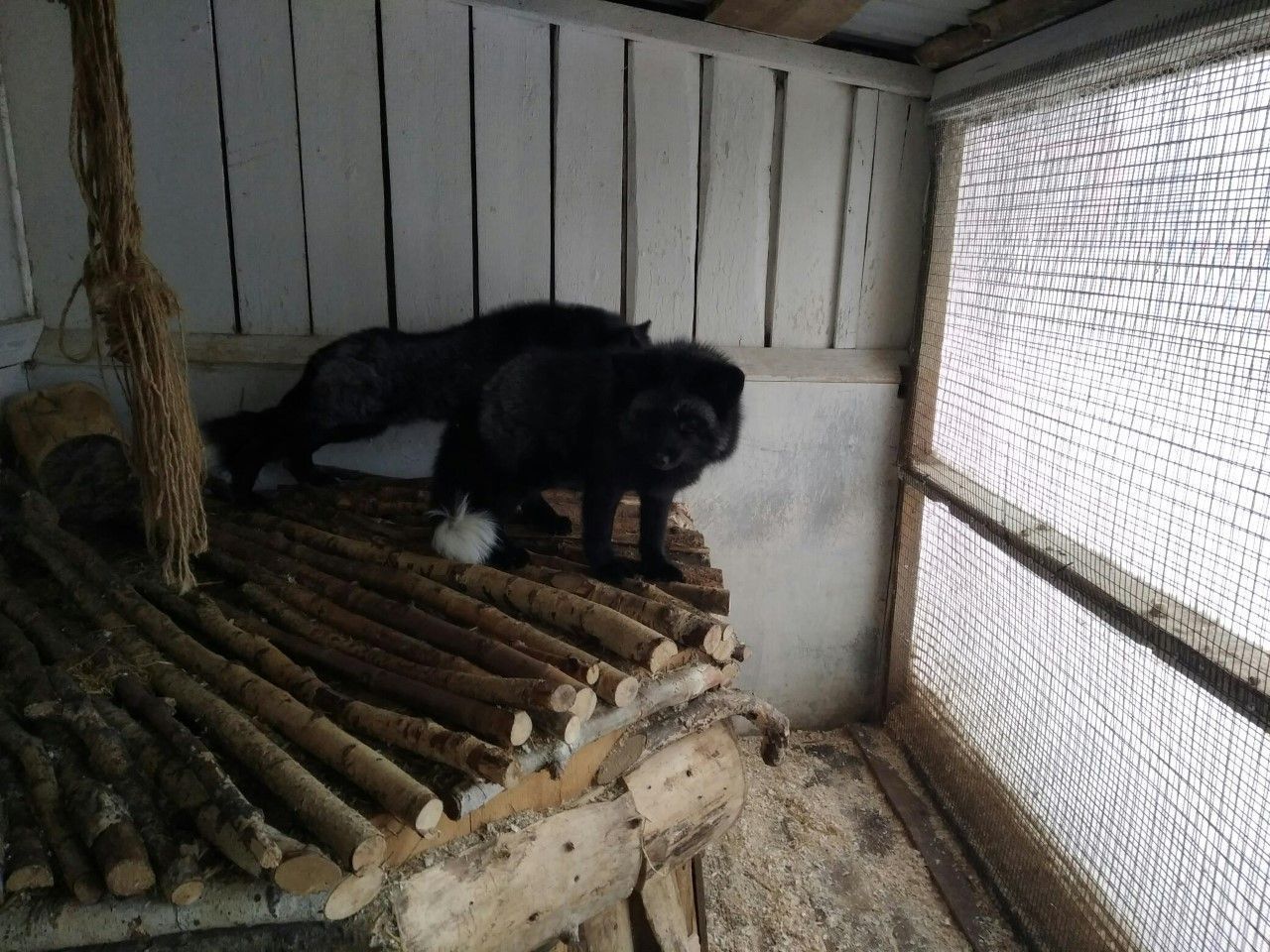 В мини-зоопарке есть две чудесные чернобурые лисички. Они заехали на «Чудо-остров» этим летом. Лисички только приживаются, поэтому когда заходишь к ним в клетку, они ведут себя скромно, присматриваются, немного стесняются.
