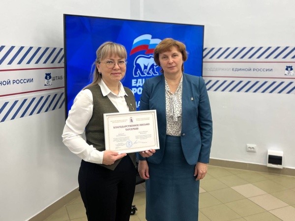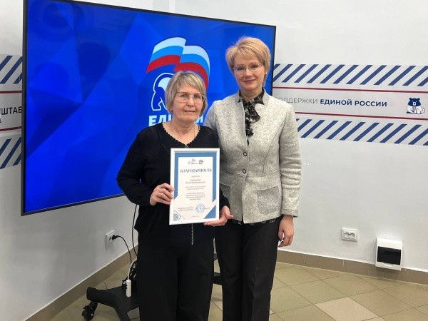 Заместитель секретаря Марийского регионального отделения партии «Единая Россия» по проектной деятельности Наталья Козлова вручила благодарность председателю общественного совета регионального партпроекта «Мир возможностей» Наталье Фомичевой за вклад в развитие проекта на территории республики.