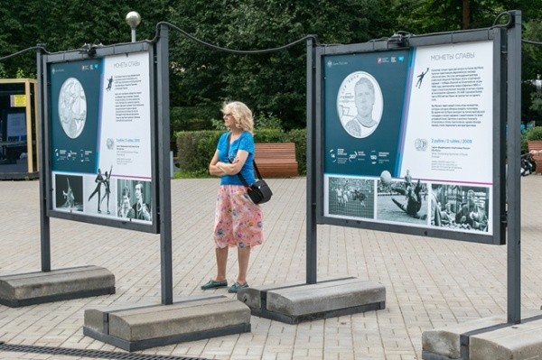 Посетители увидят изображения знаковых монет, выпущенных в память о наиболее выдающихся спортивных событиях с участием отечественных атлетов и тренеров.