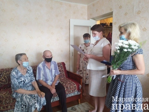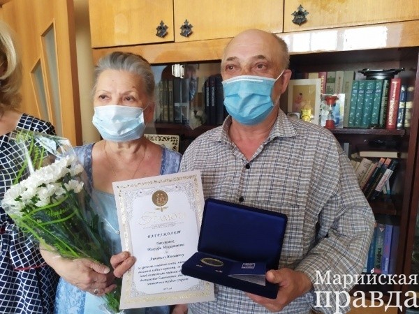 Николай и Елизавета Тарасовы, Галина и Василий Гусевы, Магруф и Антонина Вахитовы, Александр и Нина Ивановы, Аркадий и Ксения Беляковы сегодня получили грамоты от организационного комитета, медали и памятные подарки от Министерства социального развития Марий Эл.