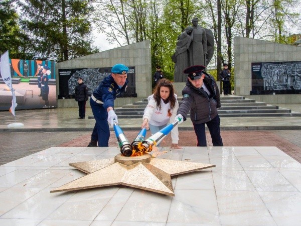 Республика Марий Эл присоединилась к масштабной акции. Торжественное мероприятие прошло в поселке Медведево, где был зажжен Вечный огонь у Монумента Воинской Славы. В церемонии приняли участие Глава Марий Эл Юрий Зайцев, генеральный директор ООО «Газпром межрегионгаз Йошкар-Ола» - управляющей организации ООО «Газпром газораспределение Йошкар-Ола» Михаил Владимиров, глава администрации Медведевского района Денис Окулов, представители органов государственной власти и местного самоуправления, депутаты Госсобрания РМЭ, участники СВО и члены их семей, представители движения «Юнармия», кадеты, члены общественных и ветеранских организаций, ОНФ, жители и гости поселка.