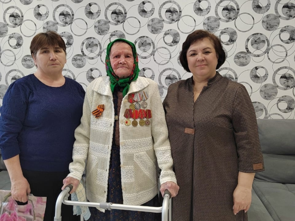 Юбилейную медаль «80 лет Победы в Великой Отечественной войне 1941-1945 гг.» 98-летней труженице тыла вручили председатель Собрания депутатов Звениговского района Наталия Лабутина и глава администрации Исменецкого сельского поселения Галина Героева.