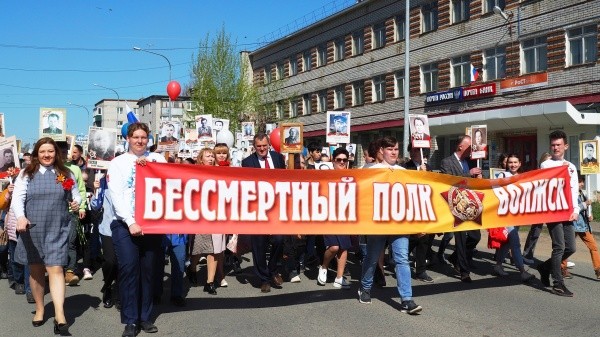 В колонне «Бессмертного полка» с портретами своих семейных героев прошли волжане и гости разных возрастов: много молодых людей, семей с детьми, людей более старших поколений. Вместе с участниками акции в одном строю прошел мэр Волжска Рафис Шагвалеев. Сопровождал «Бессмертный полк» духовой оркестр. Впереди также маршировали юноармецы Волжска. Волжане прошли по улице Ленина от ДК МЦБК, затем свернули на Чапаева и завершили шествие в Парке Победы.