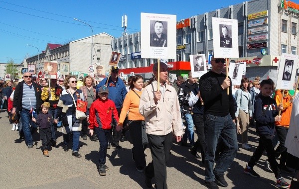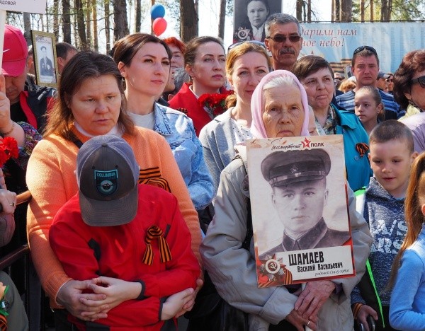 День Победы жители Волжска традиционно начали с шествия в колонне «Бессмертного полка», а затем состоялось памятное мероприятие в Парке Победа возле главного городского обелиска.