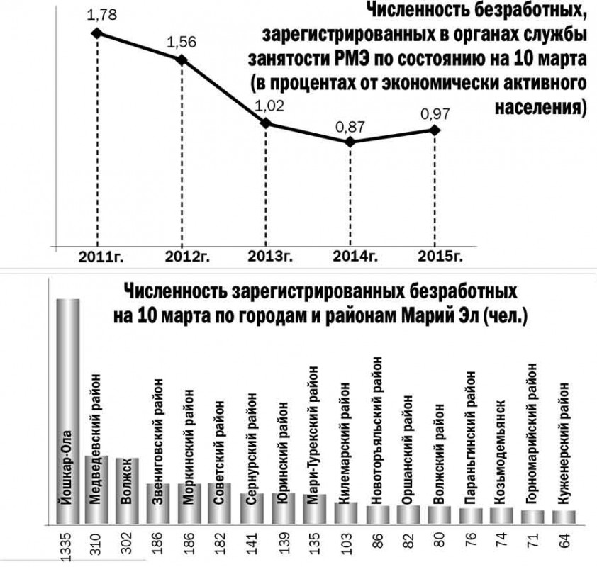 Численность зарегистрированных безработных на 10 марта по городам и районам Марий Эл