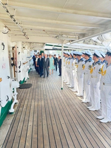 Учебное плавание в Японском море длилось чуть более месяца. А 15 августа фрегат зашел в порт города Чхонджин КНДР с дружественным визитом. Пятьдесят будущих моряков и рыбаков, одетых в парадную форму, торжественно возложили венки к Монументу воинам-освободителям и Мемориалу воинам, павшим в Сэйсинской операции.