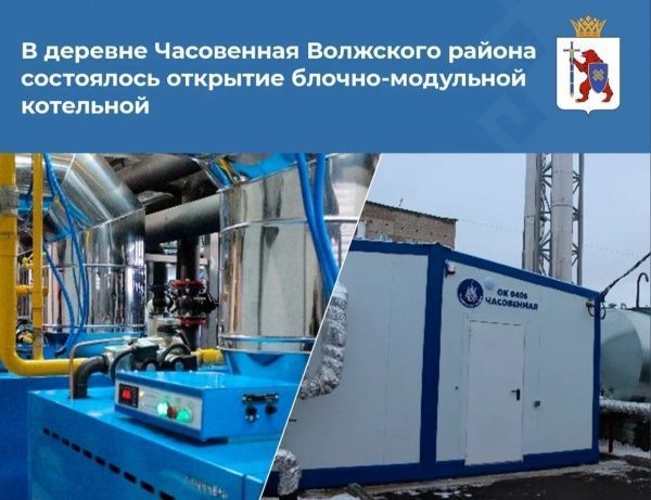 В зимние холода довольно неприятно столкнуться с неполадками теплоснабжения. К счастью, жителям деревни Часовенная Волжского района это не грозит – недавно тут открылась блочно-модульная котельная.