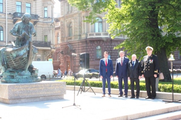 Атмосфера в городе на Неве дышала праздником. Ровно в полдень, сразу после выстрела Петропавловской пушки для петербуржцев и гостей города играл духовой оркестр, звучали поздравления во славу главного российского корабела и отца-основателя отечественного флота.