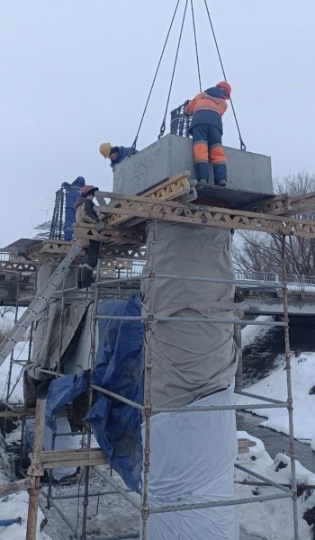 Работы по реконструкции мостового перехода на 70-м километре дороги Йошкар-Ола – Уржум в Куженерском районе Марий Эл не прекращались и в новогодние праздники.
