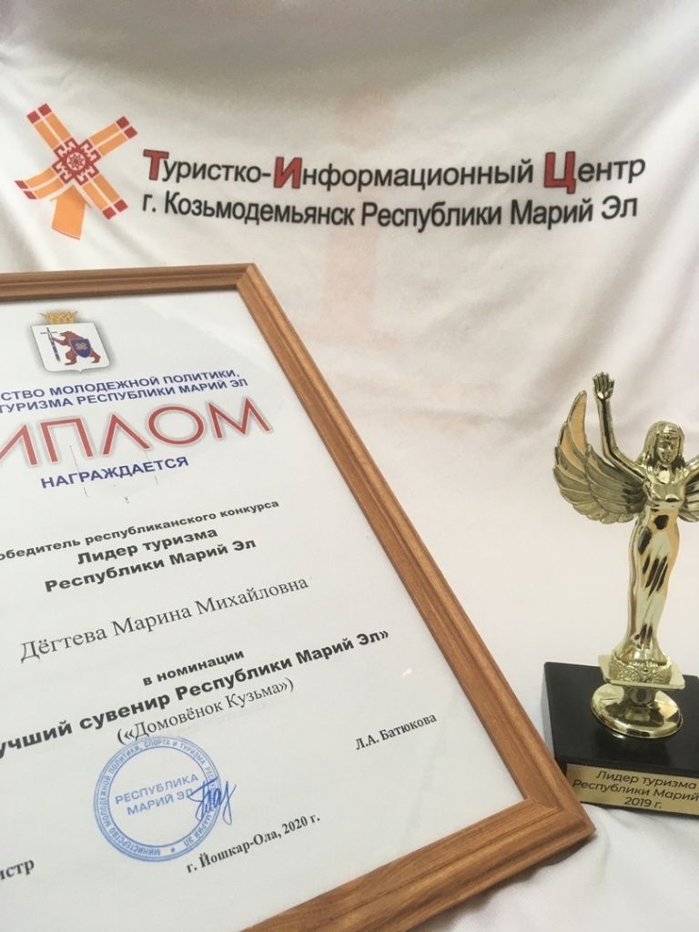 Работу мастерицы из Козьмодемьянска признали лучшей на республиканском конкурсе "Лидер туризма Республики Марий Эл". Жюри очаровал ее домовенок Кузьма.