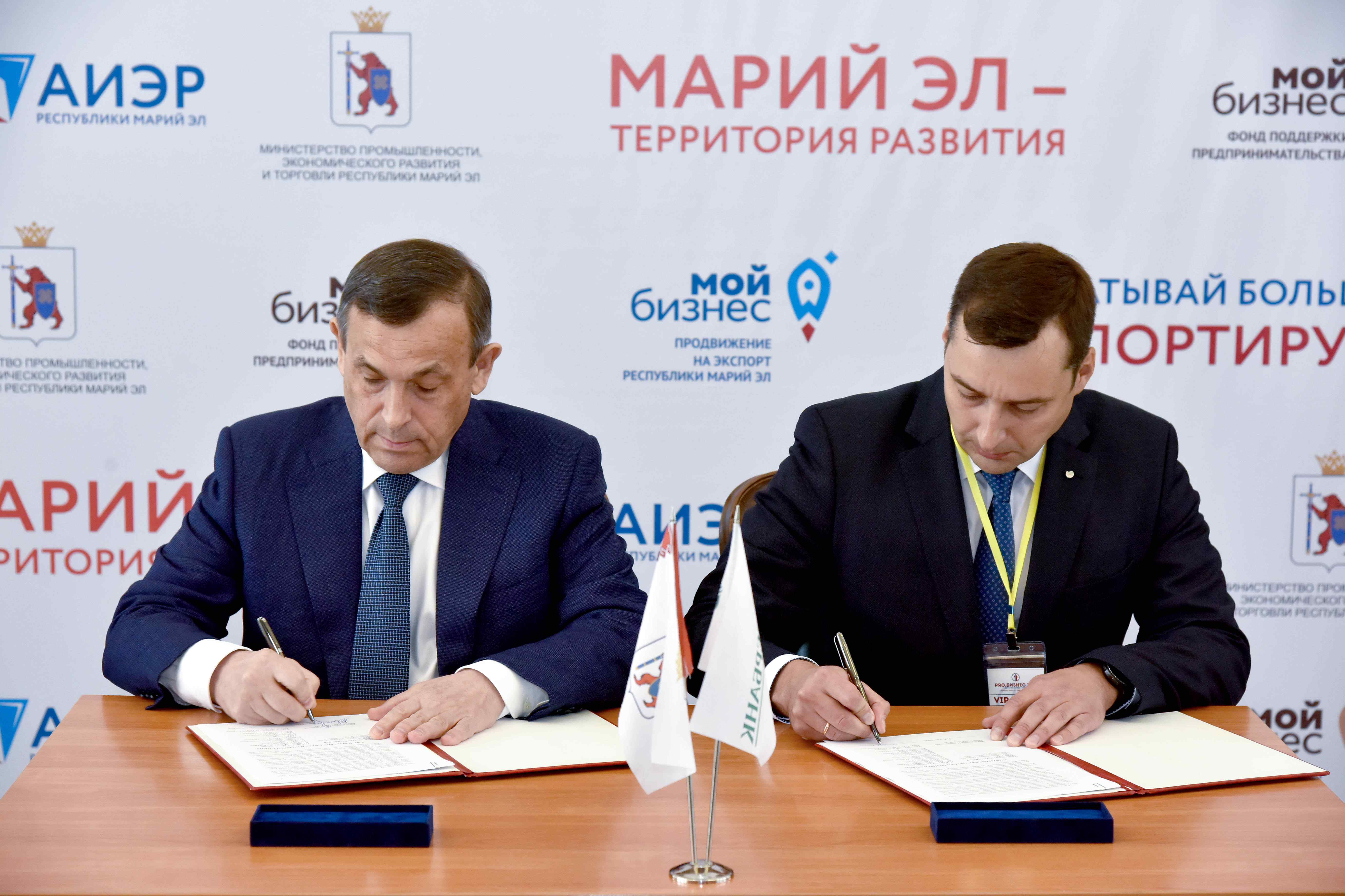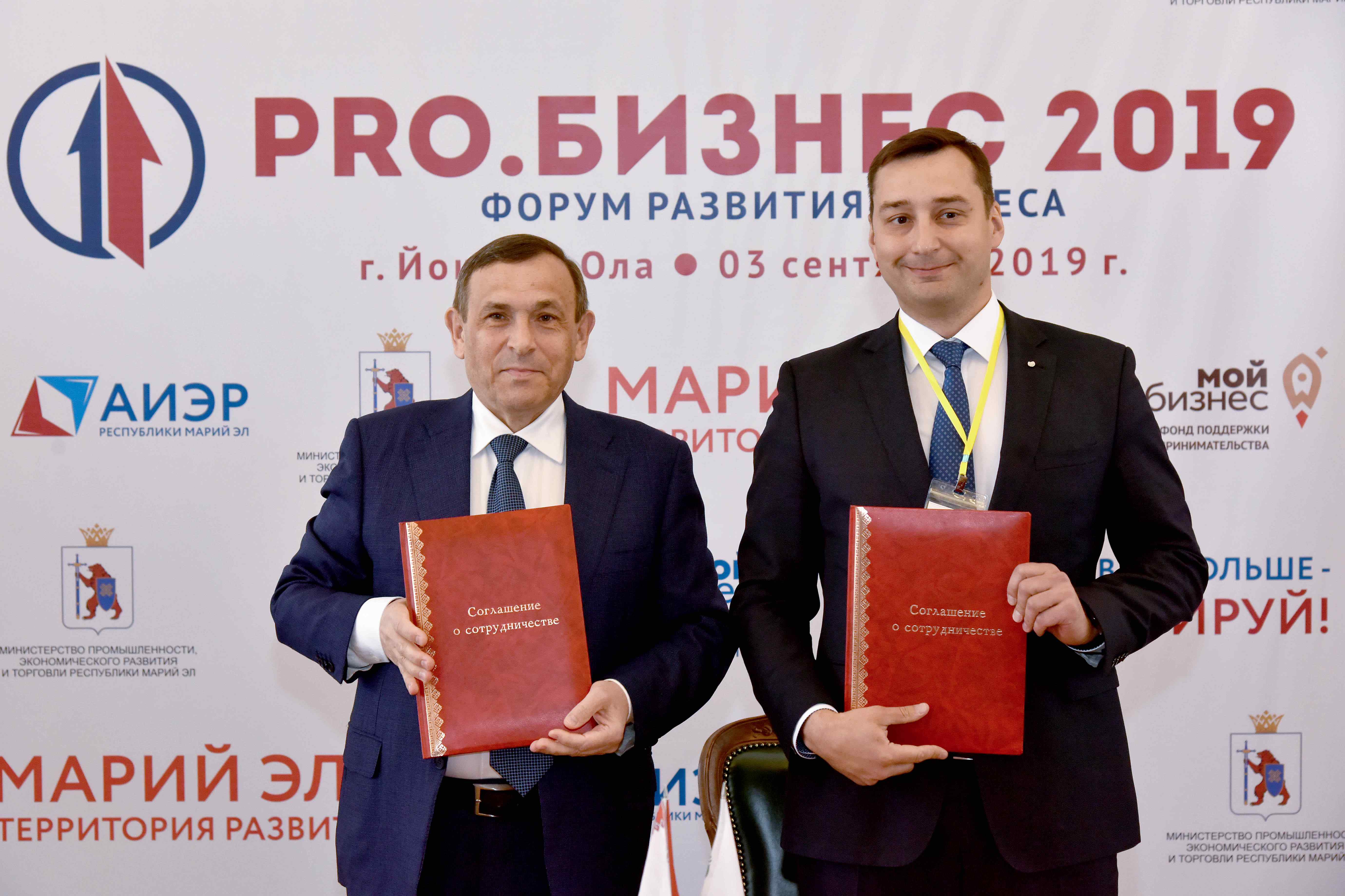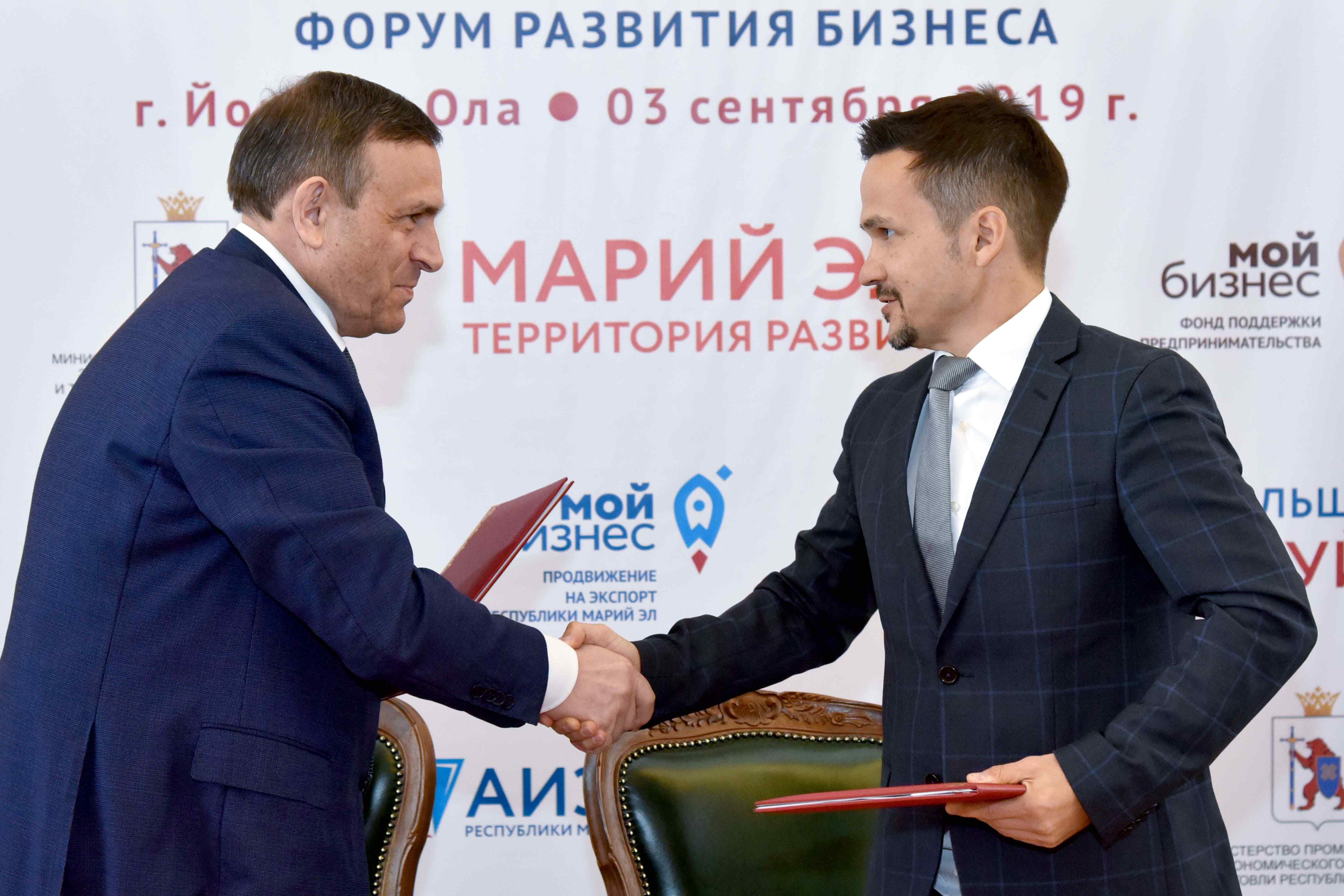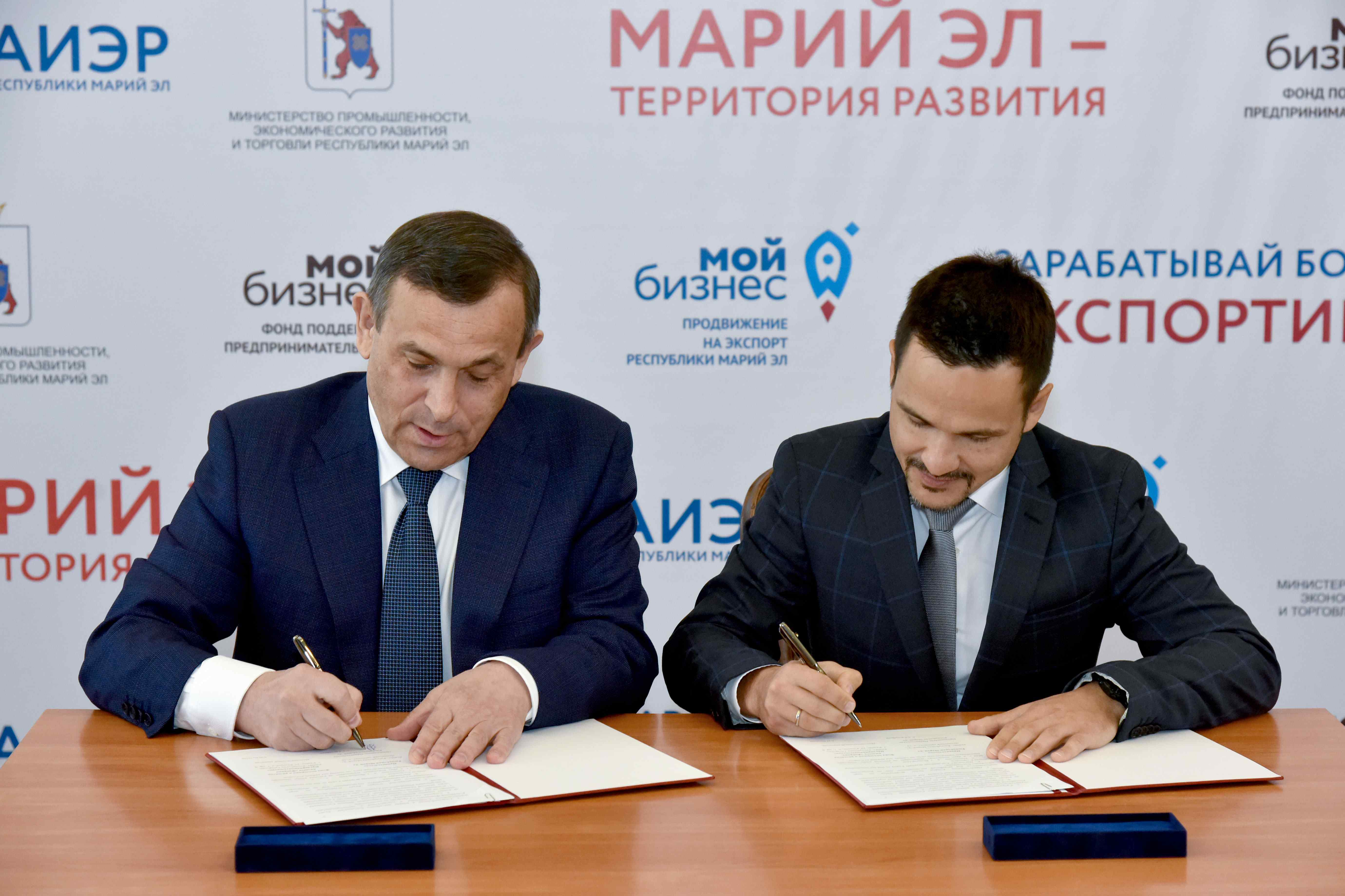 Затем Александр Евстифеев подписал два соглашения о сотрудничестве. Первое из них заключено с управляющим Отделением Марий Эл № 8614 Сбербанка России Арсением Колобовым, второе — с прибывшим из Казани основателем проекта «Фабрика предпринимательства» Айдаром Булатовым.