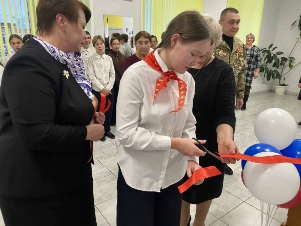 Право перерезать ленточку предоставили секретарю Мари-Турекского местного отделения «Единой России», главе района Ларисе Яндыбаевой, директору школы Полине Сорокиной, дочери Героя Розе Евсеевне и внуку, участнику специальной военной операции Сергею Васильевичу. В преддверии открытия Сергей Васильевич провел для школьников урок мужества, рассказав о современных героях – потомках ветеранов Великой Отечественной войны.