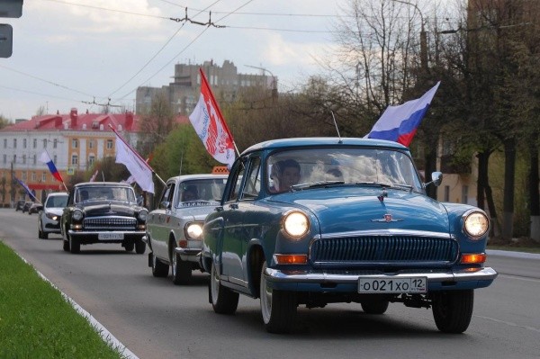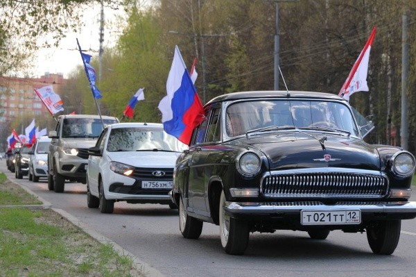 Автоколонна из 12 автомобилей, украшенных флагами «Диктанта Победы», Республики Марий Эл и партии «Единая Россия», торжественно проехала по центральным улицам Йошкар-Олы, стартовав с площади Ленина.