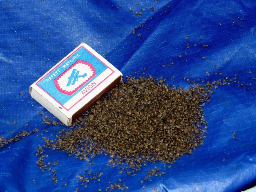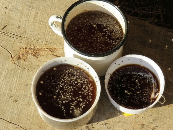 Объясняет он это так:− 20-22 июня мошек было такое количество, что вечером, сидя у костра, у многих одежда или накидка была сплошь покрыта этим «гнусом». Нельзя было понять, какого цвета у детей одежда или спальные мешки. Часто обедали в реке, погрузившись в воду, ставя на поверхность тарелку с едой, − вспоминает он. − В этом году мошек тоже примерно такое же количество. Три дня ездили научным отделом заповедника по северо-восточным районам республики, и везде одна и та же картина. Особенно вечером, перед закатом и утром после рассвета, когда становится тепло, их очень много. Если оставить чай или еду, то за 5 минут вся поверхность еды или питья покрывается этим гнусом. Вчера за 5 минут в открытой палатке набрал объем мошек, трижды превышающий объем спичечного коробка. Невозможно было сделать хорошее фото ландшафтов, так как мешали мошки.