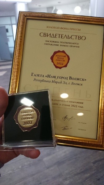Газета "Наш город Волжск" получила знак отличия "Золотой фонд прессы - 2022"