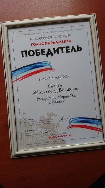В эти дни в Москве проходит деловой форум «Качественная пресса и перспективы ее развития». В программе второго дня мероприятия – подведение итогов профессиональных конкурсов. Газета «Наш город Волжск», входящая в медиахолдинг «Марийская правда», стала победителем всероссийского конкурса «Голос парламента».