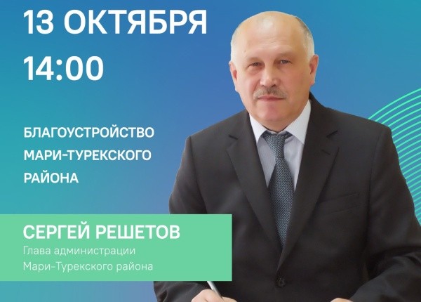 13 октября в 14:00 состоится прямой эфир ЦУР Марий Эл с главой Мари-Турекского района Сергеем Решетовым.