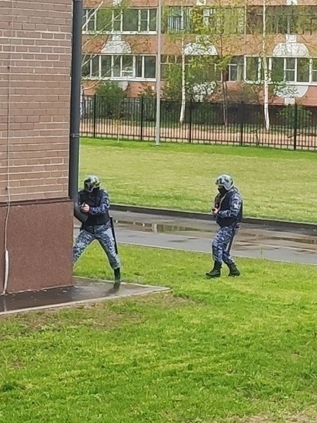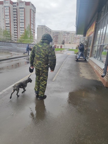 Во время проведения тренировки силовики прибыли по сигналу тревоги и заблокировали вход в здание. Специалисты со служебной собакой с помощью специального оборудования обследовали школу и прилегающую к нему территорию, чтобы предотвратить возможные угрозы.