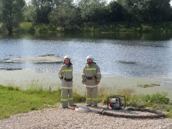 Во время занятий огнеборцы-добровольцы продемонстрировали боевое развертывание и тушение условного пожара с использованием прицепной техники и мотопомпы.