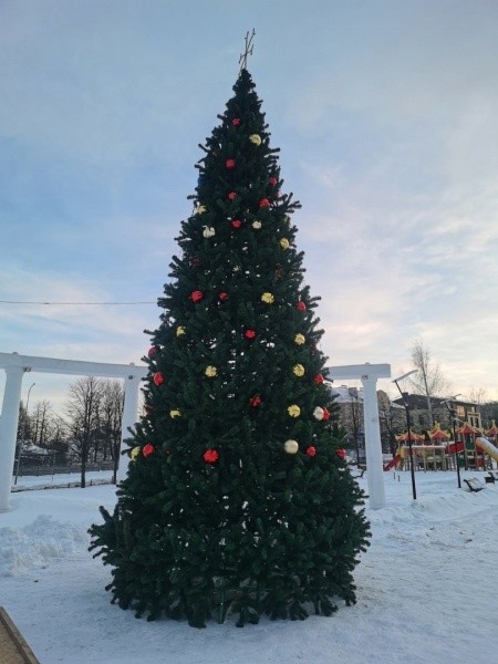 Вчера, 12 декабря, в Козьмодемьянске установили главную городскую елку. Она уже радует горожан в техносквере "Сияние".
