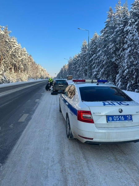 Госавтоинспекторы Марий Эл помогли водителю справиться с заменой колеса в сильный мороз