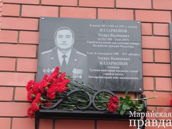 В Волжске на фасаде школы №5 установили мемориальную доску выпускнику, пожарному Эдуарду Илларионову, погибшему при исполнении своего служебного долга во время тушения огня на Казанском пороховом заводе в 2017 году. Своими действиями волжанин спас жизни личного состава двух отделений пожарного караула и был награжден орденом Мужества посмертно.
