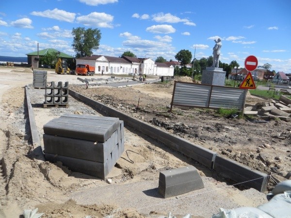 Сейчас рабочие готовят территорию площади и прилегающего участка улицы Лихачева к укладке брусчатки, ведется подготовка площадки возле памятника Ленину для оборудования фонтана. Кроме того, проезжая часть скоро «оденется» в новый асфальт, а пока здесь насыпан щебень и установлены водоотводные лотки, сообщили в администрации Козьмодемьянска. Планируется сделать в этой части города одностороннее движение, поэтому ширина пешеходной зоны будет значительно увеличена по нечетной стороне улицы (возле бывшего кинотеатра им. 15 лет ВЛКСМ). Также здесь уже подготовлены три площадки треугольной и трапециевидной формы под цветочные клумбы.