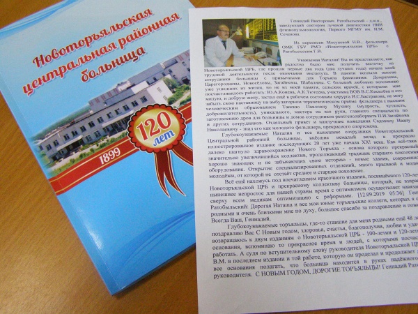 -Как все-таки далеко шагнуло здравоохранение Нового Торьяла, основа которого – прекрасный, значительно увеличившийся коллектив, продолжающий традиции старшего поколения, хорошо знающий и не забывающий свою историю. Радостно было получить весточку из Новоторъяльской ЦРБ, где прошли первые (лучшие!) два года моей трудовой деятельности после окончания институт, - писал доктор медицинских наук, заведующий сектором лучевой диагностики НИИ фтизиопульмонологии Первого МГМУ им. И.М. Сеченова Геннадий Ратобыльский.