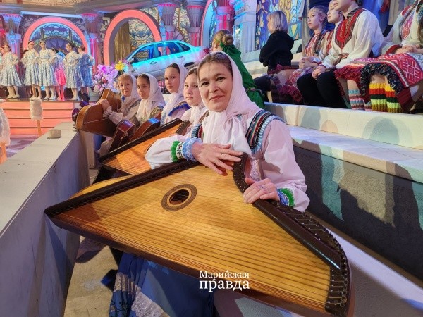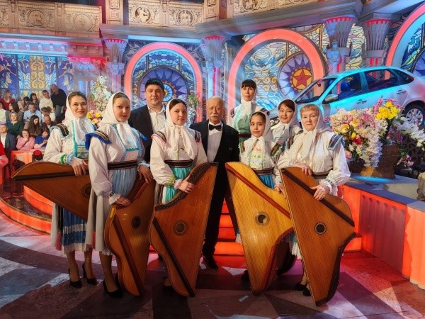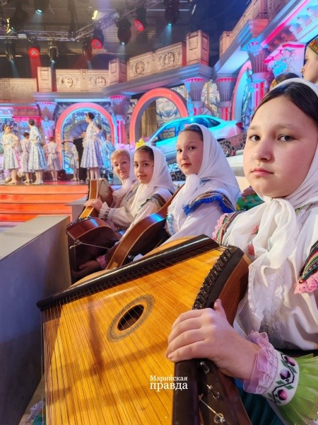 Так как передача снимается одним дублем, без повторов, пришлось коллективу из Горномарийского края ждать за кулисами своего выхода, никуда не отлучаясь, с тяжелыми гуслями на шее. Но оно того стоило – зал встретил наших артисток бурными аплодисментами.
